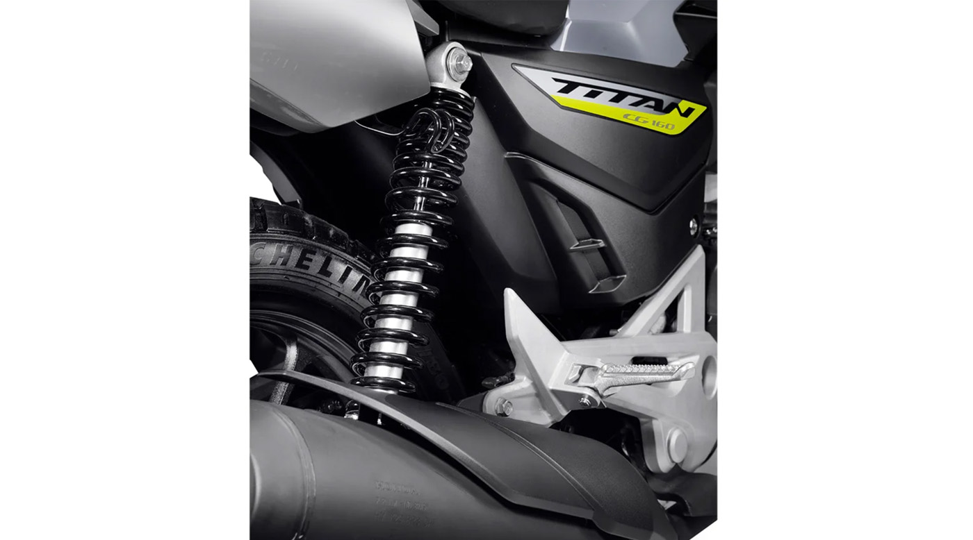 Suspensão Traseira/Curso: Dois amortecedores / 106 mm